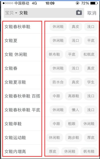 尤其是对于中小卖家来讲,首先就应该找到一个能够聚焦你宝贝核心属性的关键词,而这个关键词是你准备重点竞争的,这个关键词是最能代表你宝贝核心属性的。那怎么找?我们依然以女鞋为例:打开淘宝无线端,搜索“女鞋”,立刻会有下拉框,这个大家都知道吧!